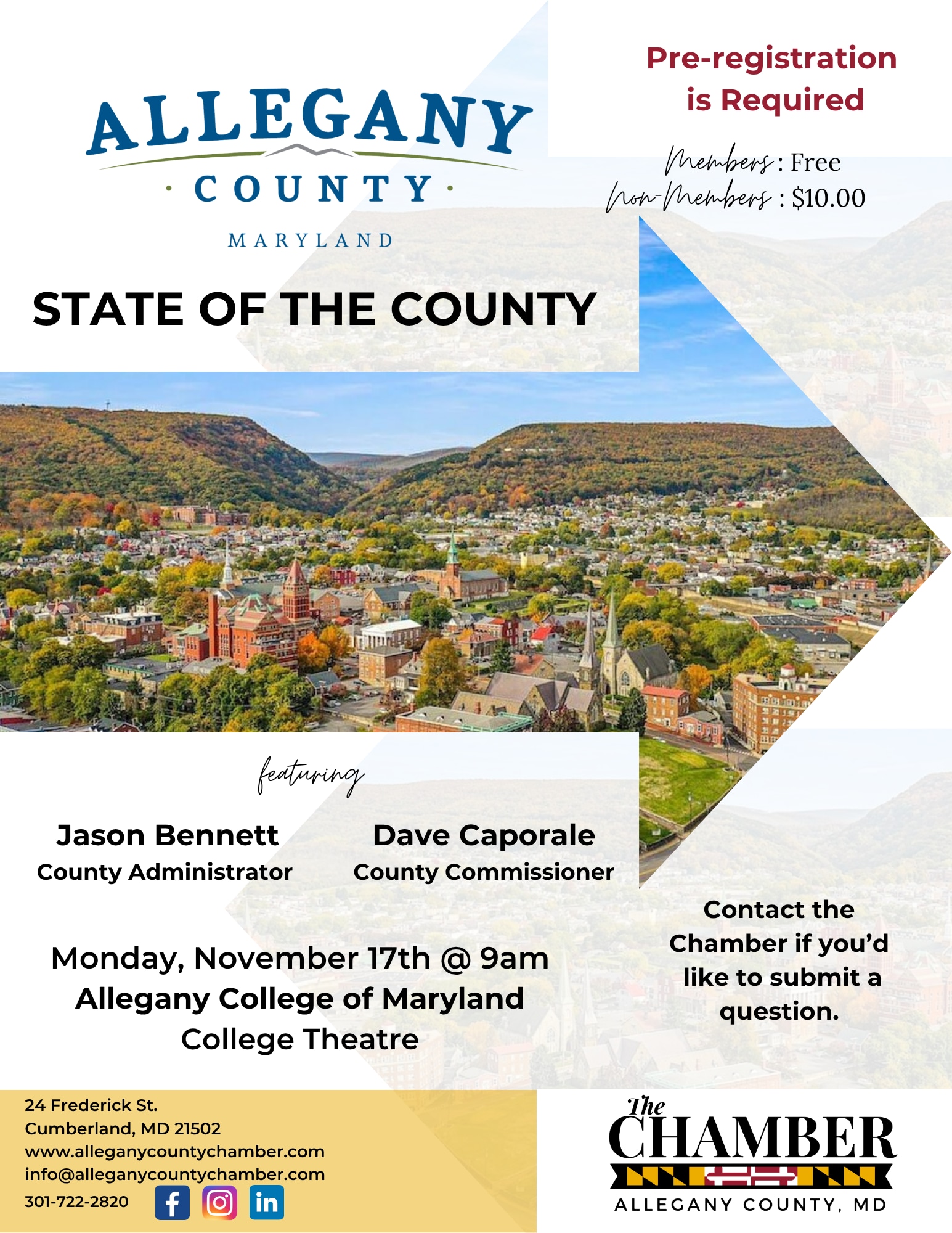 Members of the Chamber get free access to this event, hosted to provide a full view of Allegany County Government. Non-members may register for just $10.